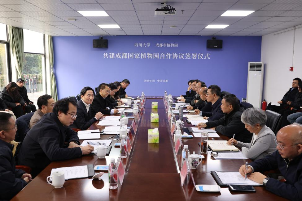 1月13日,四川大学与成都市植物园签署合作协议共建成都国家植物园。四川大学党委书记甘霖出席仪式并讲话,成都市副市长王锋君主持并讲话。四川省林业和草原局副局长王景弘、成都市政府副秘书长刘毅、成都市公园城市建设管理局局长刘嘉聪,四川大学常务副校长褚良银、副校长游劲松,及相关单位负责人参加活动。